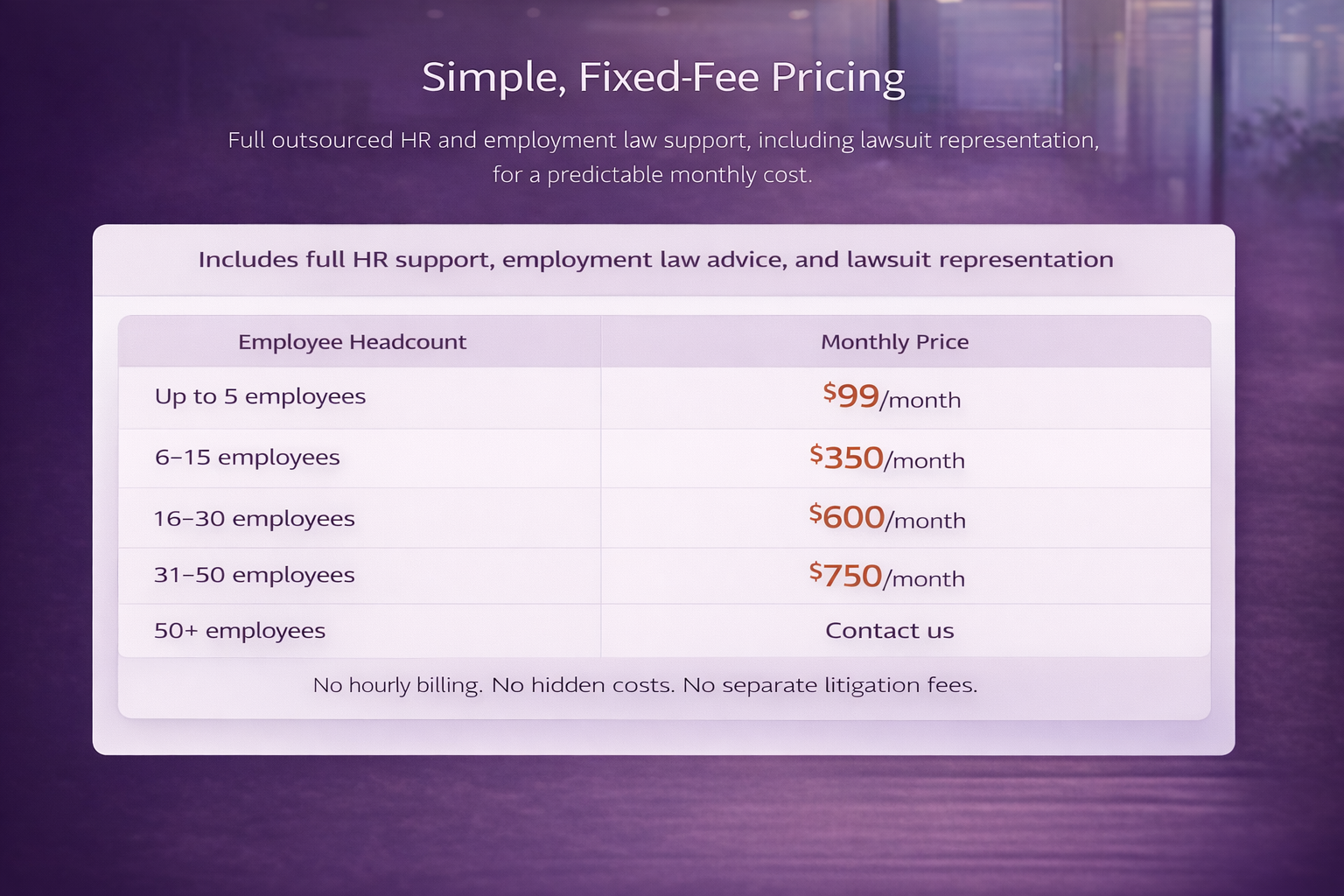 Lomond Legal provides fixed-fee HR and employment law support for organizations that want clarity, control, and legal protection without hourly billing.